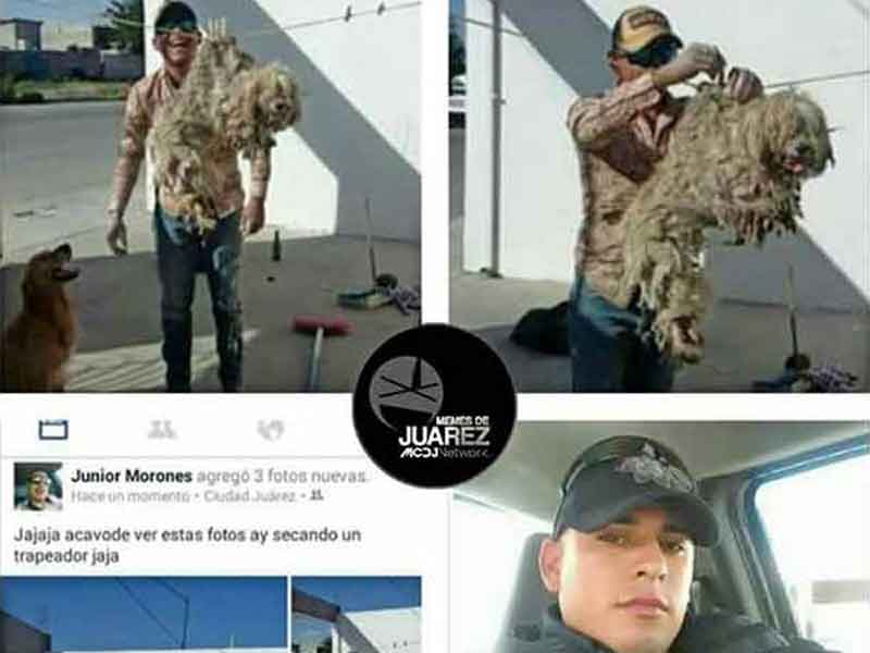 El agente de Juárez publicó imágenes en redes sociales donde aparece maltratando a un can
