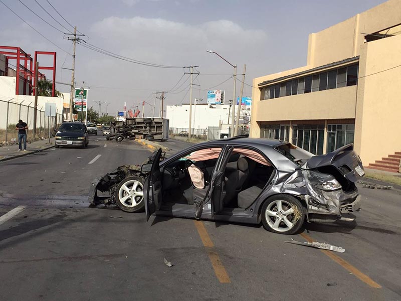 Un joven conductor que omitió un señalamiento vial provocó una volcadura en el cruce de las calles Tomás Alva Edison y David Herrera Jordán, en la colonia Hidalgo, la tarde de este lunes