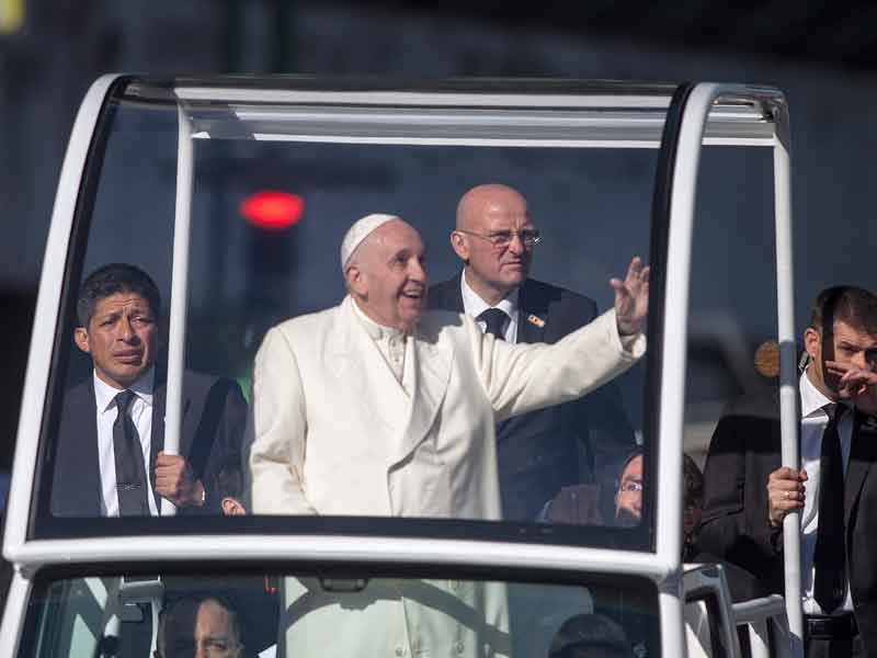Antes de ingresar a El Punto, el papa recorrió el estadio olímpico Benito Juárez.