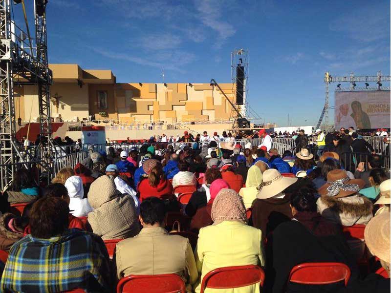 Con más de 10 horas de anticipación, los feligreses poseedores de boleto para la misa de las 4 de la tarde comenzaron a poblar los alrededores de El Punto