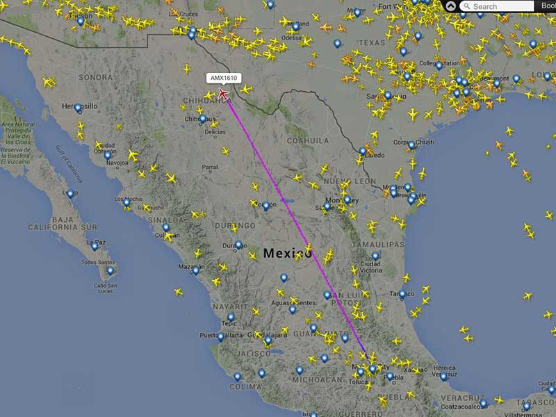 El avión donde viaja el papa Francisco en su histórica visita a esta ciudad ingresa en estos momentos a territorio chihuahuense