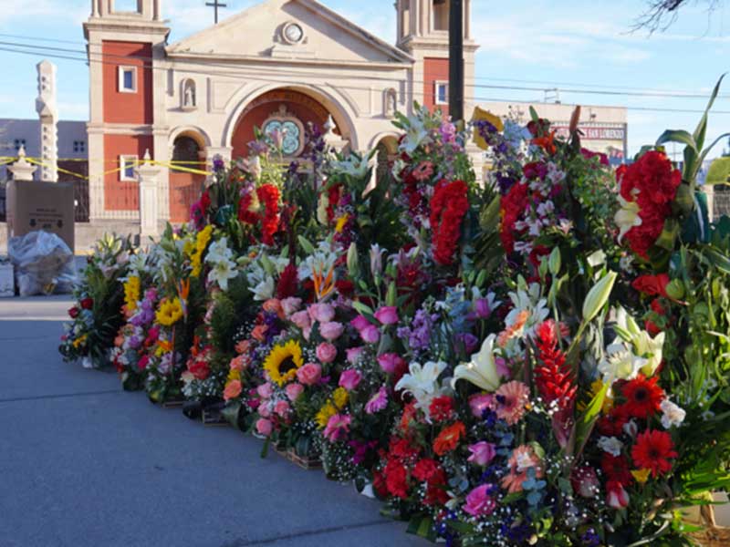 Eliseo y Francisco establecieron su florería a la intemperie el día de ayer por la noche frente al Santuario de San Lorenzo, lugar en el que decidieron acampar para continuar vendiendo arreglos a los peregrinos que por ahí pasarán