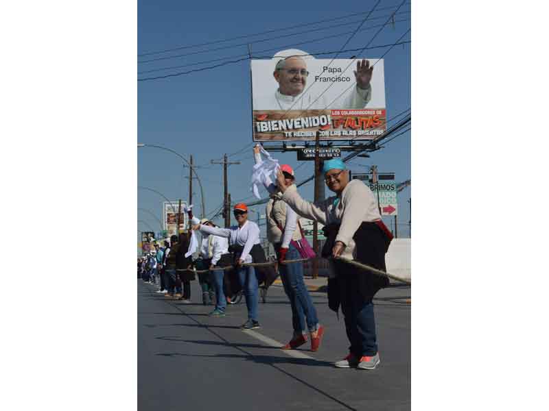 Mientras que la Policía Federal y el Ejército Mexicano mantienen más vigilada que nunca a Ciudad Juárez, miles de peregrinos se han apoderado de la frontera