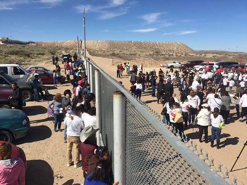La organización Border Network The Human Rihths organizó esta mañana una misa en la frontera con Anapra para que migrantes pudieran tener contacto con sus familias