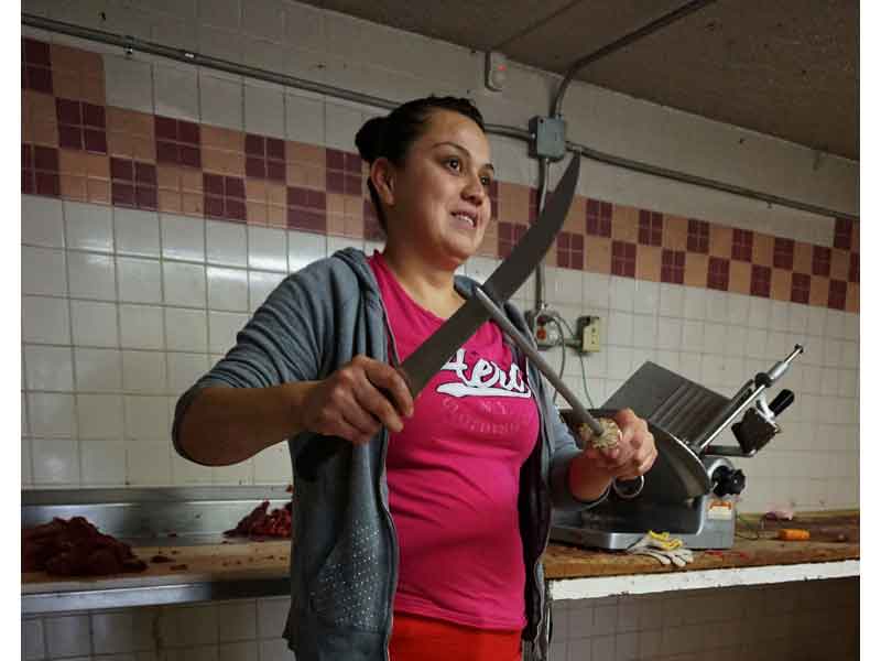Nancy es una carnicera que tiene 9 años trabajando en un oficio en el que es poco común ver a mujeres desempeñándolo