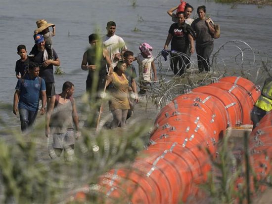 AMLO reconoce a Abbott por recorrer boyas alambradas en Río Bravo