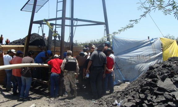 Brigadistas de cuerpos de seguridad y rescate se encuentran en el lugar haciendo maniobras para tratar de salvar a los carboneros