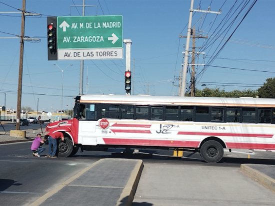 La unidad de transporte público se encuentra obstruyendo uno de los carriles de la Francisco Villarreal Torres, por lo que se recomienda tomar vías alternas