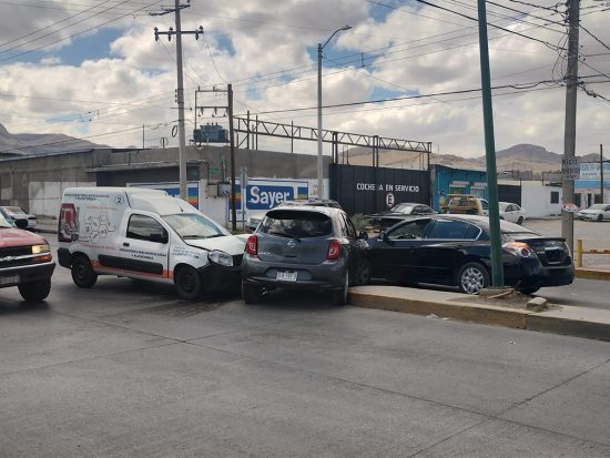 Los tres vehículos obstruyen parcialmente los carriles izquierdos en ambos sentidos de la avenida