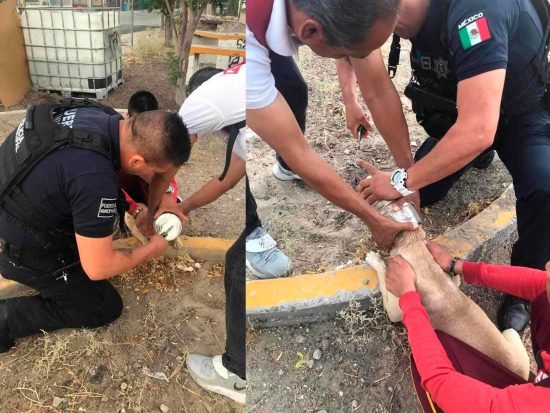 De no ser por la oportuna intervención de agentes de la Policía Municipal, el cachorro hubiera muerto asfixiado