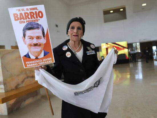 Amiga cercana de la familia y panista de arraigo, la mujer no dudó en incluir en su atuendo ‘souvenirs’ de la lucha política que llevó al panista al Palacio del Gobierno estatal