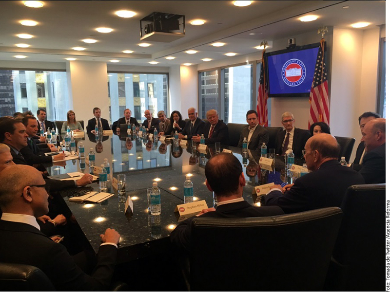 El presidente electo, Donald Trump, se reunió con los directivos de empresas de tecnología, entre ellos Tim Cook, director de Apple y Sheryl Sandberg, directora operativa de Facebook