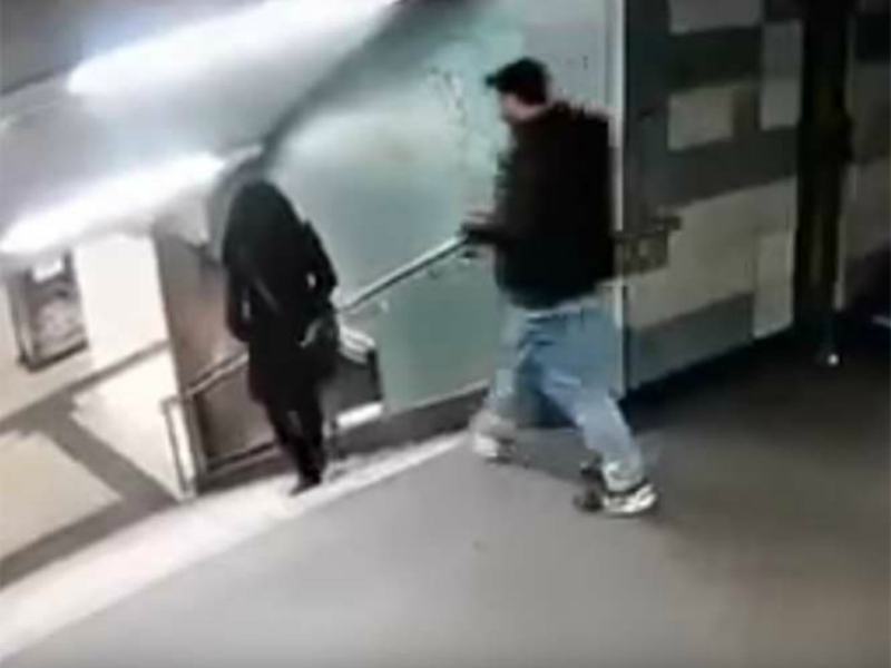 En las imágenes se observa cómo un sujeto patea a una joven que baja las escaleras del servicio de transporte público