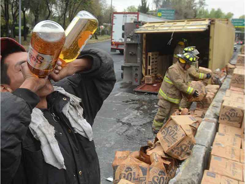 El accidente sucedió en San Simón Tolnáhuac de la delegación Cuauhtémoc y distintas personas aprovecharon para tomar el producto