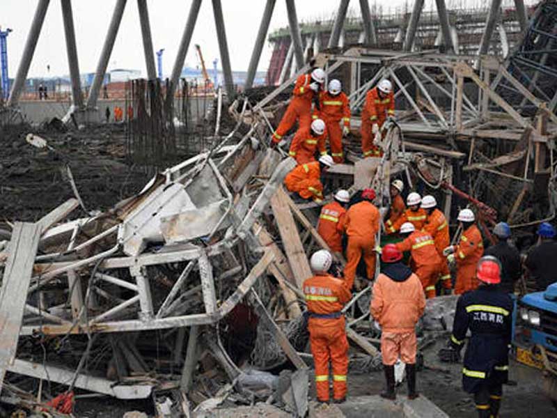 El accidente tuvo lugar durante el cambio de turno, cuando la plataforma donde estaban los obreros, en lo alto de la torre de refrigeración, se derrumbó