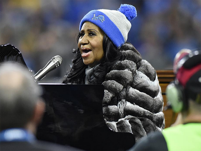 Aretha Franklin interpretó este jueves el himno nacional de Estados Unidos durante el partido de futbol americano del Día de Acción de Gracias