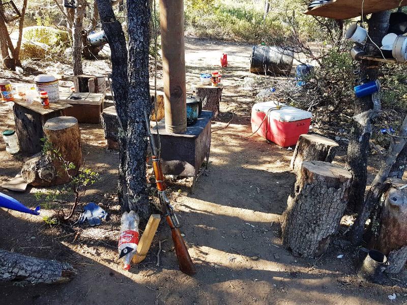 Elementos que integran las Bases de Operación Mixta localizaron en un camino de terracería de la sierra, un campamento improvisado donde fueron abandonados rifles y municiones de alto poder