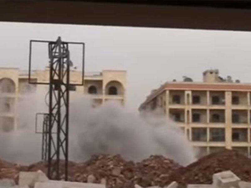 Las imágenes fueron captadas por una televisora rusa, donde se aprecia un bombardeo a un edifico