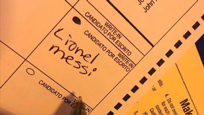 Dicha persona escribió el nombre de Lionel Messi en el espacio designado y la imagen no ha tardado en darla la vuelta al mundo gracias a las redes sociales.