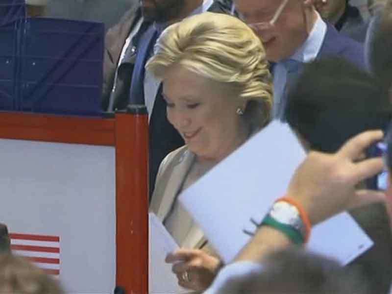 La candidata estuvo acompañada de su esposo Bill Clinton, a las casillas de votación donde depositaron su sufragio