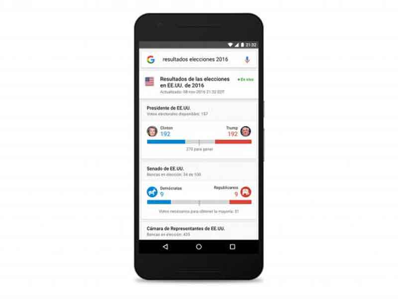 El martes, 8 de noviembre, tan pronto cierren las casillas de votación, Google integrará resultados en las búsquedas que se hagan desde todo el mundo