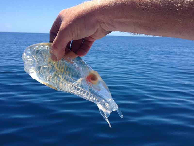 Esta espécimen habita a 150 metros de profundidad en las aguas cálidas de casi todos los océanos del mundo