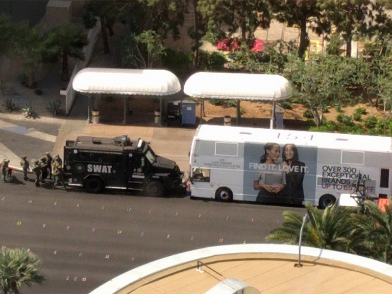 Todo comenzó al reportarse un tiroteo en Las Vegas Boulevard en el corazón de The Strip, cerca del hotel-casino Cosmopolitan