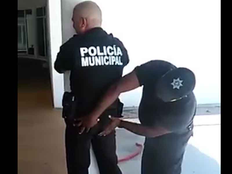 Un elemento de seguridad es esposado mientras que sus compañeros lo “castigan” realizando actos sexuales y manoseándolo