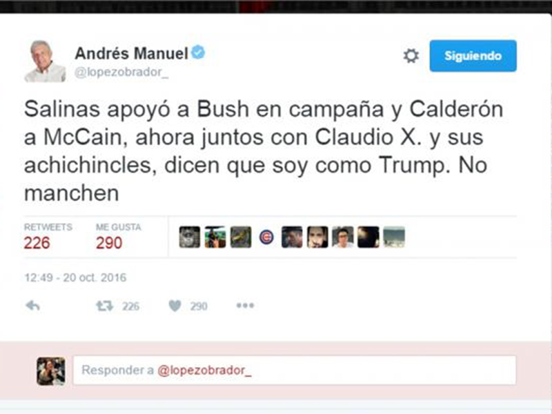 Andrés Manuel López Obrador señaló a Carlos Salinas, Felipe Calderón, Claudio X. González “y sus achichincles” como las personas detrás de las comparaciones entre el tabasqueño con el republicano Donald Trump