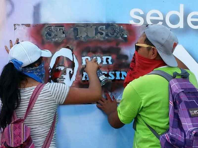 Los jóvenes rayaron la fachada de las oficinas de la Secretaría de Igualdad Sustantiva y Desarrollo de las Mujeres Michoacanas y del Centro de Convenciones y Exposiciones de Morelia
