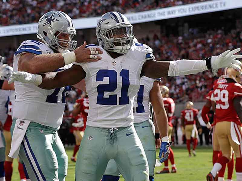 El mariscal de campo lanza dos pases de TD, mientras el corredor superó de nuevo las 100 yardas en la victoria de los Vaqueros 24.17 sobre los 49ers