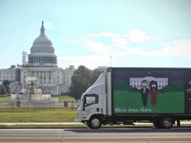 Escenas características de la serie se colocaron en anuncios afuera de lugares estratégicos