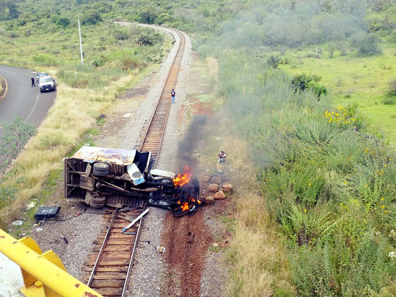 Un grupo de jóvenes de la Normal Rural de Tiripetío atravesó y volteó sobre las vías del tren una camioneta repartidora de la empresa Boing, la cual previamente interceptaron sobre la carretera
