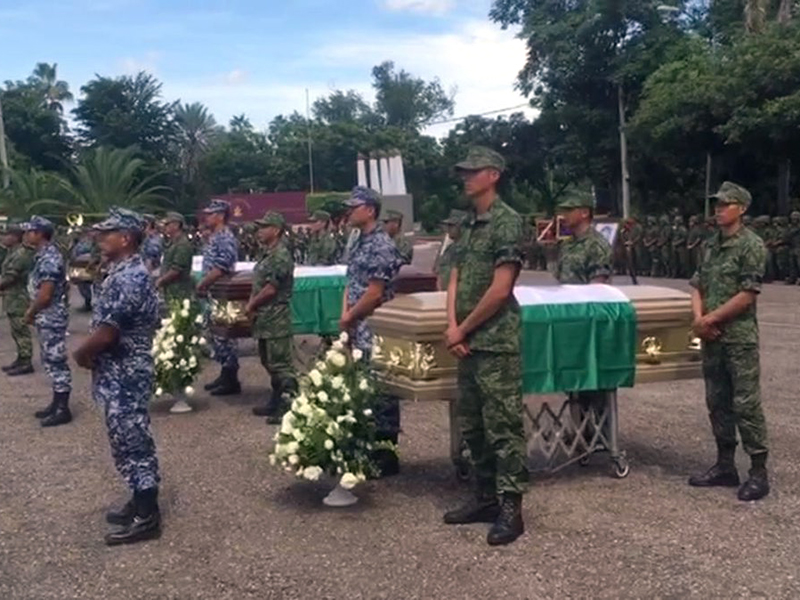 El Secretario de la Defensa Nacional, Salvador Cienfuegos, encabezó el evento póstumo, en el cual se reunió con familiares de las víctimas y enlazó telefónicamente al Presidente Enrique Peña Nieto, quien ofreció sus condolencias a los deudo
