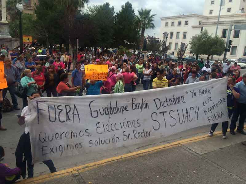 Empleados agremiados al Sindicato de la UACH acusaron a su dirigente, Guadalupe Baylon, de bloquear el desarrollo de la elección interna, para mantenerse en el cargo