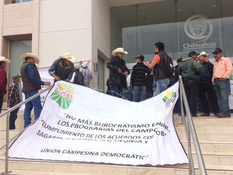 Clausuraron las puertas del edificio Héroes de la Reforma, que alberga la Secretaría estatal de Hacienda, para exigir el pago de 18 millones de pesos, del programa 3x1