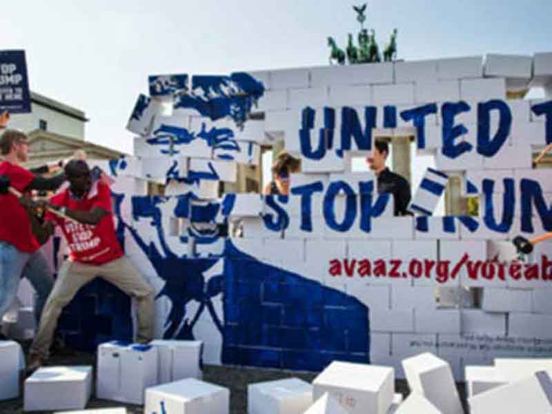 Activistas en Alemania derriban ‘muro del odio de Trump’