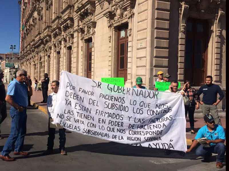 Con protesta frente a Palacio exigen el pago del adeudo de 15 millones de pesos, que no ha sido finiquitado