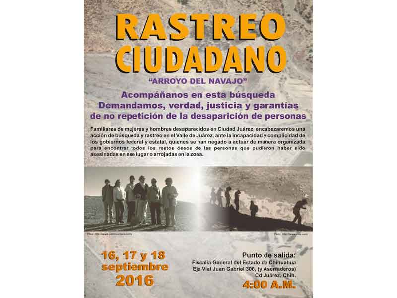 Cerca de 8 familias que se encuentran exiliadas en El Paso colaborarán con el rastreo de ciudadanos que se realizará en el Arroyo el Navajo