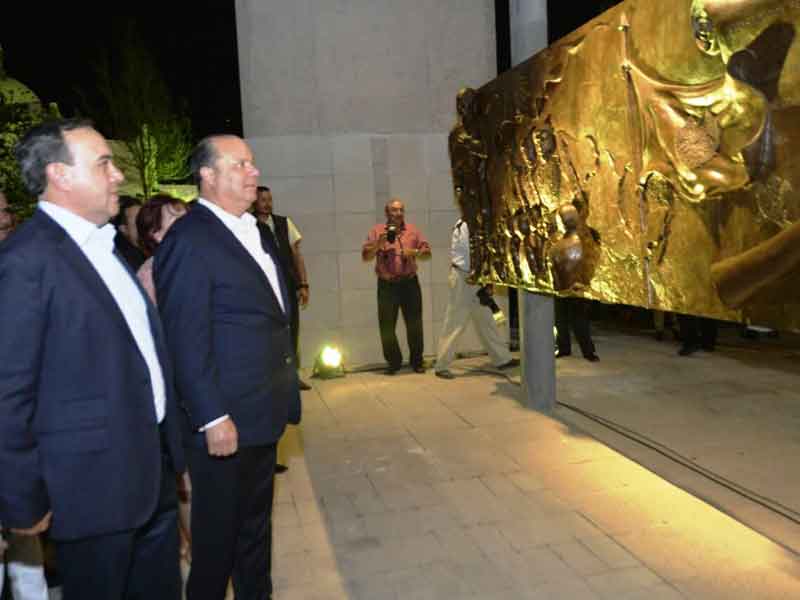 El gobernador César Duarte Jáquez puso en funcionamiento el encendido eléctrico y la fuente que adorna esta obra realizada por la escultora Elisa Ponzanelli