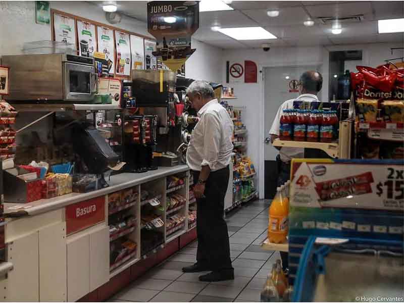 La imagen del presidente Andrés Manuel López Obrador, de visita en Nayarit, dentro de una tienda de conveniencia OXXO, se volvió viral