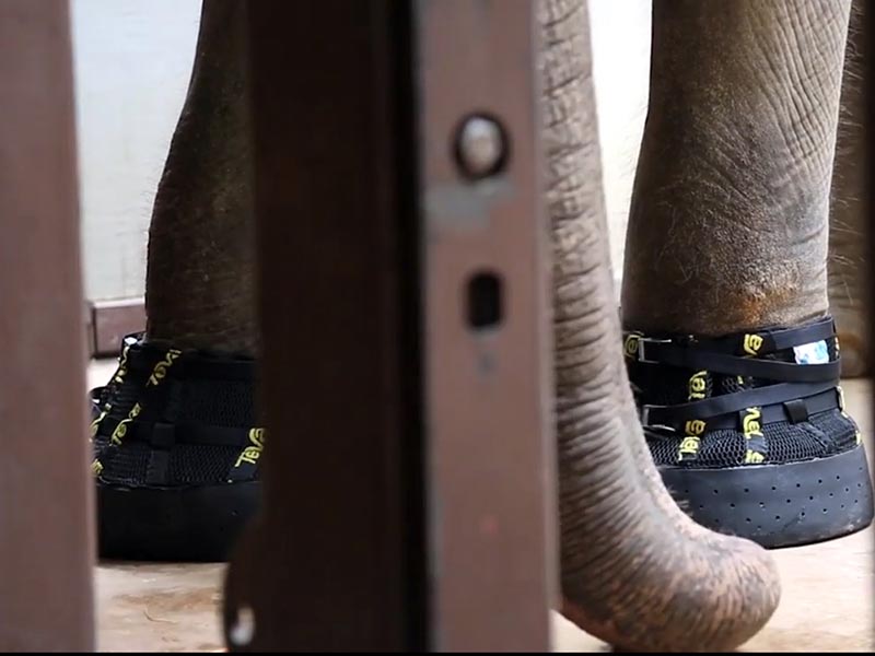 Shanthi, una elefanta asiática de 41 años en el Zoológico Nacional en Washington, recibió una ayuda inusual para lidiar con su artritis: un par de botas.