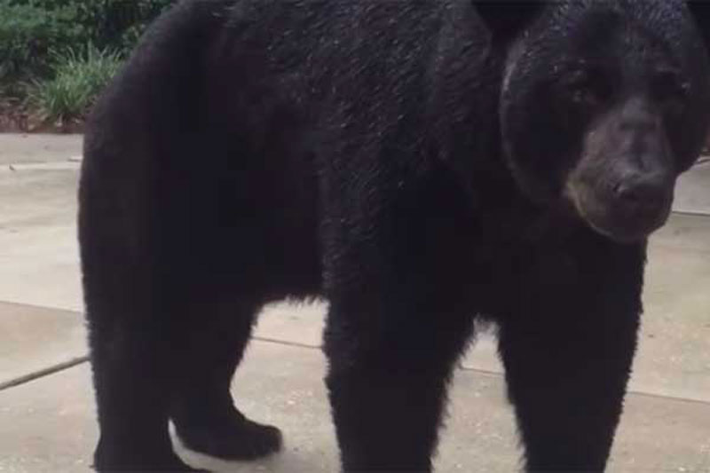 Teliece Sander, habitante del condado de Seminole en Florida, caminaba hacia la puerta de su casa con la vista fija en su teléfono cuando se encontró un visitante que la aterrorizó: se trataba de un oso de casi 140 kilogramos de peso.
