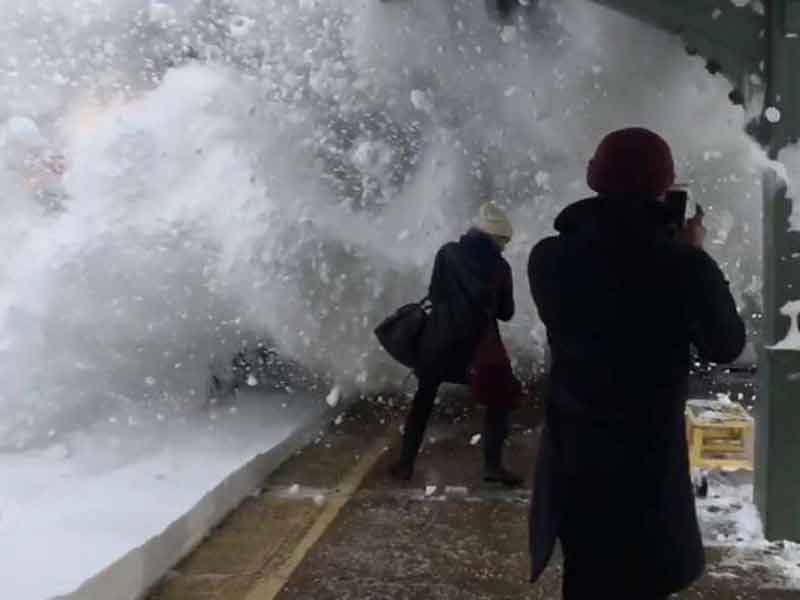 Mirá qué pasa cuando un tren llega atravesando un espeso manto de nieve