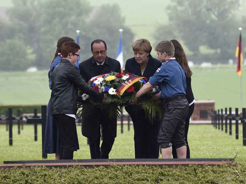 El presidente francés, François Hollande, y la canciller alemana, Angela Merkel, encabezaron las ceremonias de los 100 años de una batalla que duró 10 meses y que mató a 163.000 franceses, 143.000 soldados alemanes y