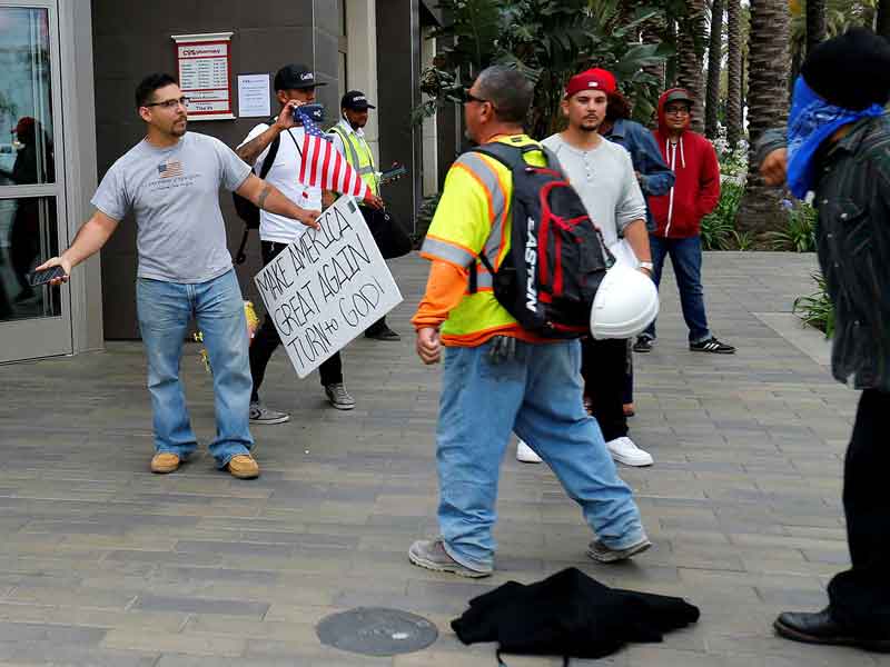 Un grupo opositor al virtual candidato republicano ignoró las órdenes de la policía y quemó al menos una papelera y una señal de tráfico