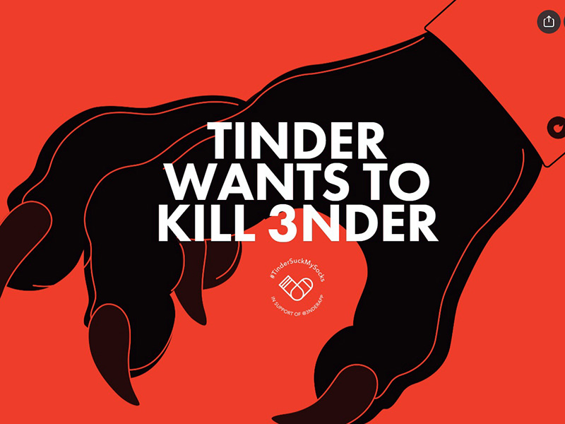 Debido a las coincidencias fonéticas entre Tinder y 3nder ("thrinder"), la app de tríos será demandada a menos que retire la aplicación del mercad