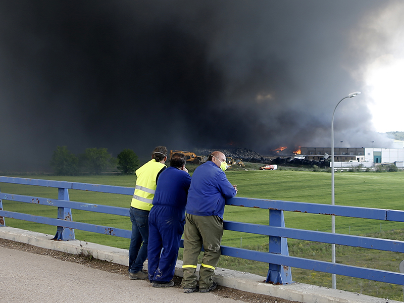 Diez unidades de bomberos se desplegaron para apagar el fuego en la localidad de Seseña, en la provincia de Toledo, que llevaba más de 10 horas activo
