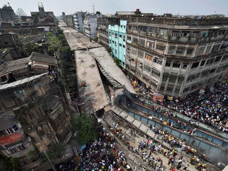 Un tramo de la estructura se derrumbó sobre los vehículos y la gente que pasaban por debajo