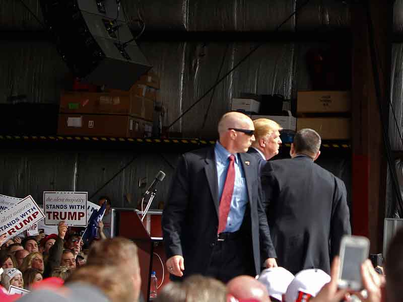 Un hombre trató de violar el cordón de seguridad durante un acto de campaña del magnate; fue retirado por personal de seguridad y Trump finalizó su discurso sin incidentes